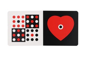 Bezprostredne po narodení vidí bábätko len do 20 – 30 cm, teda do vzdialenosti tváre matky pri kŕmení. Jeho obraz je rozmazaný a rozozná čiernu a bielu vo veľkých kontrastoch. Neskôr vníma červenú farbu a asi v 3-4 mesiacoch žltú, modrú a zelenú. Až v 6 mesiacoch dieťa rozlíši detaily a po dovŕšení prvého roku vidí ako dospelý. Ukazovaním vhodných obrázkov dieťatku stimulujete nielen zrak, ale aj nervovú sústavu a napomáhate jeho správnemu vývoju. Rozmer: 15 x 15 cm Vhodné od 0 mesiacov