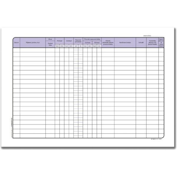 Nepropisovací, nečíslovaná formát A4 na šířku obsahuje 32 listů sešitová vazba V1