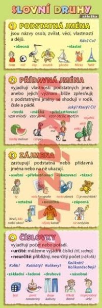 Praktická záložka obsahuje přehledně zpracované slovní druhy včetně příkladů a názorných ilustrací.