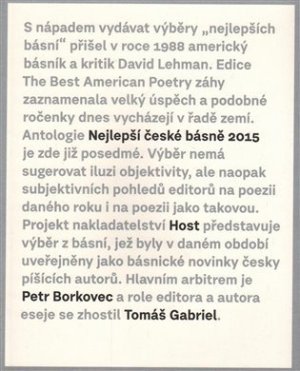 Tradiční ročenka, milovaný i nenáviděný výběr z české poezieVýběr „nejlepších“ básní nemá sugerovat iluzi objektivity, ale je výsledkem setkání dvou editorů, dvou subjektivních pohledů na poezii daného …