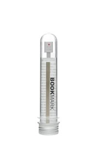 Záložka z tuhého materiálu (kartonu), oboustranně tištěná, vložena do sáčku s lepící chlopní.