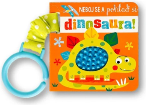 Mini dotyková knížka pro kočárek s motivy stegosaura a dalších dinosaurů.