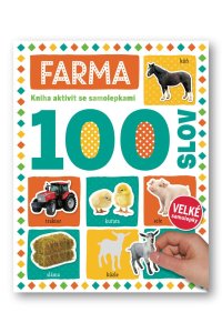 Výrazné obrázky a fotografie zvířat a předmětů z farmy v barevných rámečcích s popisky představí dětem 100 prvních slov z tohoto prostředí.