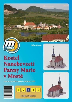 Papírový plastický model v měřítku 1:300------------------Kostel Nanebevzetí Panny Marie v Mostě je pozdně gotický chrám, který byl po požáru města vystavěn v letech 1517–1550.