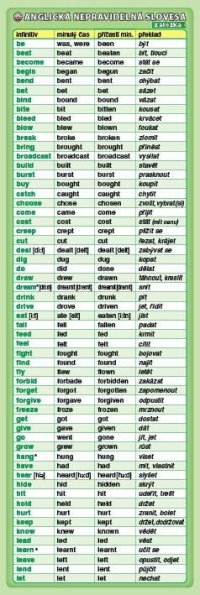 Praktická záložka obsahuje tvary minulého času a příčestí minulého nejužívanějších nepravidelných sloves.