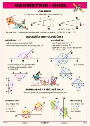 Naučná tabulka přináší přehledný souhrn učiva o úhlech.