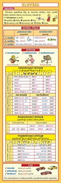 Záložka vysvětluje gramatické kategorie sloves, druhy sloves a slovesné tvary.