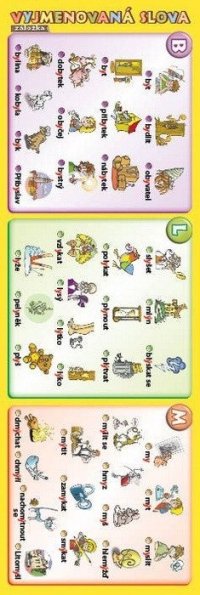 Praktická záložka obsahuje přehledně zpracovaná ilustrovaná vyjmenovaná slova.