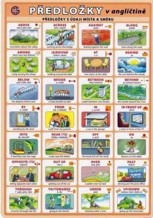Anglické předložky s českým překladem a ilustrovaným příkladem.