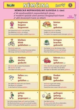Karty k procvičování nepravidelných sloves včetně jejich užití ve větách.