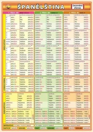 Přehledné tabulky časování španělských pravidelných sloves a pomocného slovesa haber.