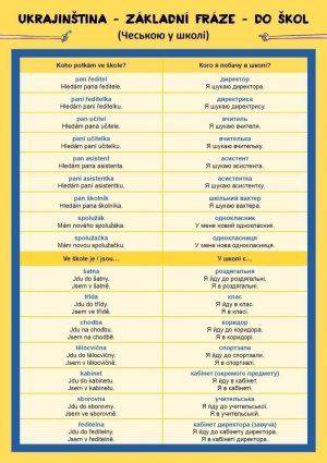 Tato naučná lamino kartička obsahuje základní fráze v ukrajinštině a zaměřuje se především na školní prostředí.