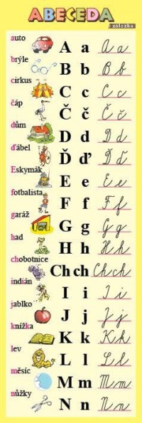 Praktická záložka obsahuje přehledně zpracovanou českou abecedu s veselým obrázkem u každého písmenka pro snazší zapamatování.