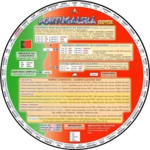 Jedinečné a gramaticky velmi obsáhlé oboustranné kolečko obsahuje celkem 92 nejpoužívanějších portugalských nepravidelných sloves.