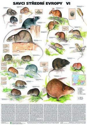 Sérii tabulí představující savce střední Evropy uzavírá výčet dalších čeledí hlodavců: hrabošovití, myšovití a myšivkovití.