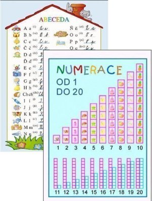 Oboustranná výuková tabule pro nácvik prstové abecedy.