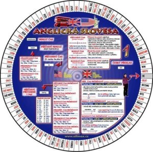 Kolečko obsahuje 92 nejpoužívanějších nepravidelných sloves nutných ke zvládnutí základů angličtiny.