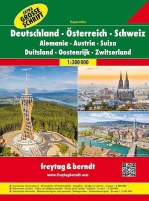 Autoatlas Německa s extra velkými názvy měst a obcí obsahuje rejstřík s PSČ, plány vybraných měst a turistické informace.