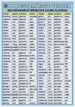 Přehled tvarů préterita a perfekta nejužívanějších německých silných sloves a smíšených sloves.