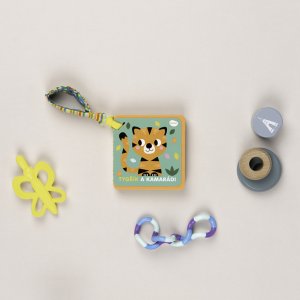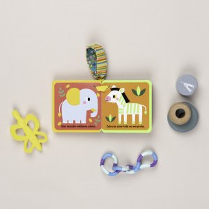 Ultralehká knížka s měkkými filcovými stránkami plná zvířátek a barev představí dětem tygříka a jeho exotické kamarády, haptické prvky pak přispívají ke komplexnímu smyslovému rozvoji těch nejmenších. Praktickým poutkem ji hravě připevníte třeba ke kočárku!