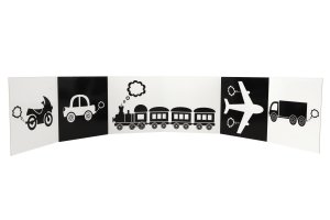 Rozvíjejte u svého miminka vnímání a lásku ke knihám už od prvních týdnů života. Děti těsně po narození vnímají zejména ostré kontrasty světlých a tmavých ploch, které upoutají jejich pozornost. Proto je toto leporelo vhodné už od prvních týdnů života vašeho miminka. Střídající se kontrastní tvary a roztomilé ilustrace v severském stylu děti zaujmou a později se na nich mohou učit poznávat jednotlivé věci. Praktický tvar harmoniky umožňuje knížku rozložit a postavit před děťátko, i když zatím není schopno samostatného listování. Vhodné pro děti od narození.
