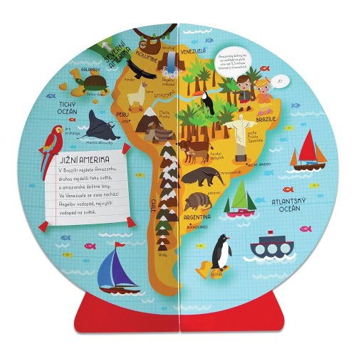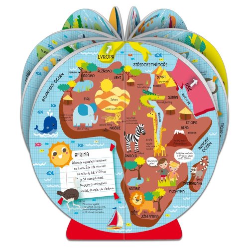 JEDINEČNÁ PLANETA - SVĚT: Rozkládací kniha s pevnými listy ve tvaru globusu na téma Svět.