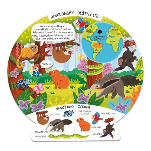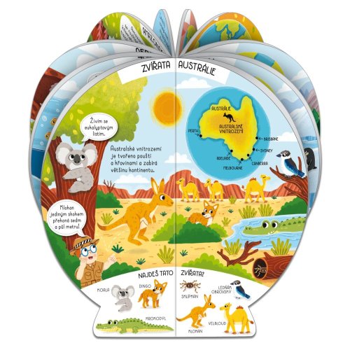 JEDINEČNÁ PLANETA - ZVÍŘATA: Rozkládací kniha s pevnými listy ve tvaru globusu na téma Zvířata.