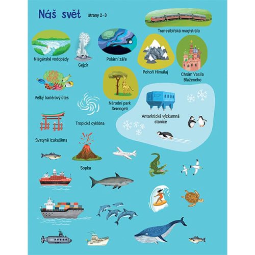 Samolepková knížka obsahuje 16 barevných stran a 8 stran samolepek k dolepení.
