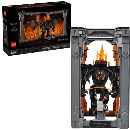Stavebnice knižní zarážky s filmovým motivem Postavte si kousek Středozemě se stavebnicí LEGO® Icons Knižní zarážka: Pán prstenů – Balrog pro dospělé V krabici najdete vše, co potřebujete k sestavení modelu LEGO® Icons Knižní zarážka: Pán prstenů – Balrog, figurku Balroga s ohnivým bičem a minifigurku Gandalfa Šedého s holí a mečem Otevřete knižní zarážky a odhalte souboj na můstku v Khazad-dûm a napolohujteodnímatelnou minifigurkou Gandalfa Šedého a figurku Balroga do dynamických póz Vložte knižní zarážku mezi své oblíbené knihy a vytvořte si tak náhled do Středozemě, nebo model rozevřete a dejte všem na odiv krásný výstavní kousek