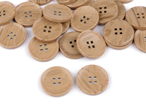 Čtyřdírkové knoflíky mají zesílený okraj a svým zabarvením připomínají strukturu dřeva. Jejich dírky nejsou typicky kulaté, ale mají tvar čtverce. Knoflíky vyniknou na kabátech, svetrech, vestách, sakách apod. Velikost knoflíků naleznete v této tabulce.