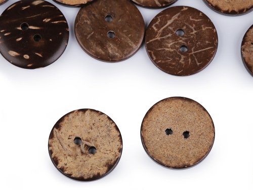 Dvoudírkové knoflíky jsou vyrobené z exotického kokosu. Využijete je jako zapínání na svetry, vesty nebo tašky. Jsou oboustranné. Knoflíky jsou baleny v sáčku. Velikost knoflíků naleznete v této tabulce.