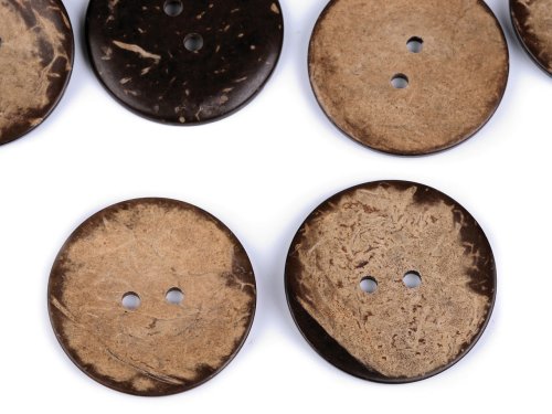 Knoflíky z kokosu jsou velmi žádáné, lze je použít z obou stran.Průměr dírky je 5 mm. [Velikost knoflíků naleznete v této tabulce.]