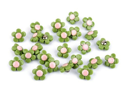Knoflíky v podobě květu roztomile doplní oděvy i doplňky. Vyniknou na svetrech, šatech, halenkách, jarních a letních bundách, batozích i taškách. Mají spodní přišívání v podobě kovového očka. Velikost knoflíků naleznete v této tabulce.