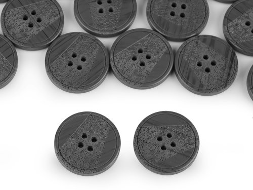 Čtyřdírkové knoflíky mají z části vygravírovaný povrch laserem. Vyniknou nejen na kabátech, ale i na svetrech, vestách apod. Velikost knoflíků naleznete v této tabulce.