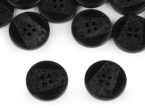 Čtyřdírkové knoflíky mají z části vygravírovaný povrch laserem. Vyniknou nejen na kabátech, ale i na svetrech, vestách apod. Velikost knoflíků naleznete v této tabulce.