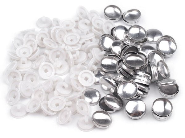 Knoflík na potahování se skládá ze dvou částí - kovové a plastové. K potažení můžete zvolit různé materiály. Potažené knoflíky skvěle ozdobí vaše halenky, šaty, saka apod. [Na látku doporučujeme použít výsečník, který najdete pod kódem 750974.]