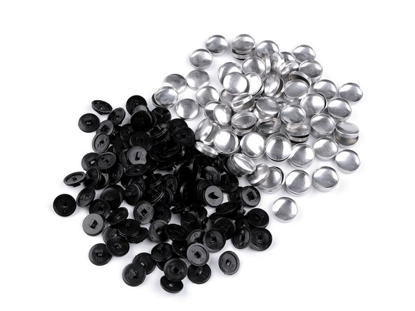 Knoflík využijete na potahování. K potažení můžete zvolit různé materiály. Vrchní část knoflíku je hliníková a spodní je plastová. [Na látku doporučujeme použít výsečník, který najdete pod kódem 750973.]