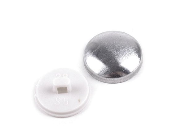 Knoflík na potahování se skládá ze dvou částí - kovové a plastové. K potažení můžete zvolit různé materiály. Potažené knoflíky skvěle ozdobí vaše halenky, šaty, saka apod.