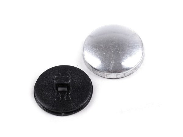 Knoflík na potahování se skládá ze dvou částí - kovové a plastové.