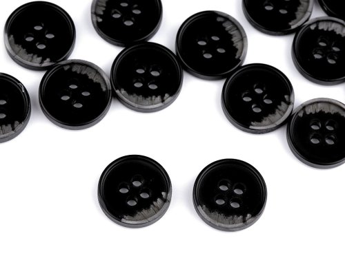 Efektní čtyřdírkové knoflíky vyniknou na košilích, sakách, bundách i svetrech. Část knoflíku je designově šrafovaná.