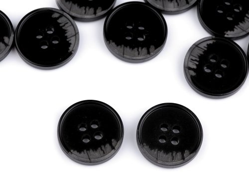 Efektní čtyřdírkové knoflíky vyniknou na košilích, sakách, bundách i svetrech. Část knoflíku je designově šrafovaná.