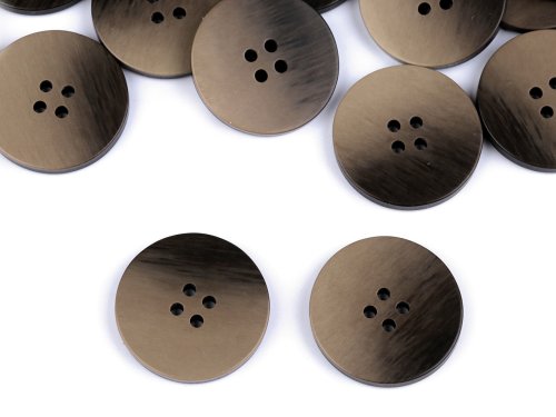 Čtyřdírkové knoflíky mají poutavý design díky jemnému barevnému ombré přechodu. Vyniknou nejen na kabátech, ale i na svetrech, vestách apod. Velikost knoflíků naleznete v této tabulce.