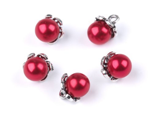 Knoflík s kaplíkem / přívěsek perla Ø9 mm - červená tm. (25 ks)