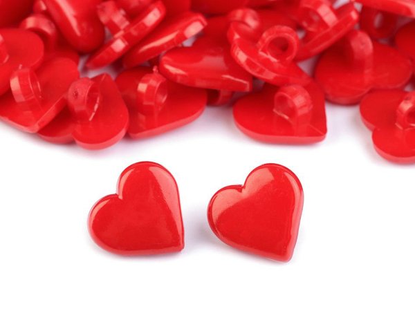 Plastové knoflíky upoutají pozornost svým srdíčkovým tvarem. Mají spodní přišívání. Můžete je našít na dívčí halenky, šaty, svetry apod. Vyniknou i jako dekorace tašek, pytlíků či kapsářů. [Knoflíky jsou baleny v sáčku.]Velikost knoflíků naleznete v této tabulce.