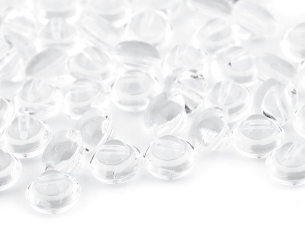 Transparentní plastové knoflíky mají spodní přišívání a hladkou polokulatou hlavičku. Knoflíky jsou vhodné k přišití na halenky, svetry, šaty apod. Dají se použít také na oči loutek a jiných dekoračních předmětů. Knoflíky jsou baleny v sáčku. Velikost knoflíků naleznete v této tabulce.