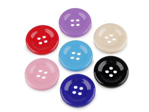 Čtyřdírkové knoflíky mají i přes svou velikost nízkou hmotnost. Využijete je na ozdobení kabelek, tašek, batohů apod. Knoflíky jsou baleny v sáčku.