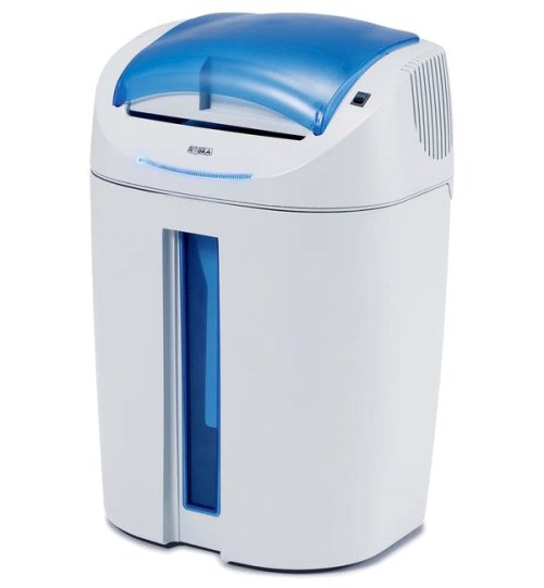 Zařízení disponuje dvěma samostatnými sadami řezných nožů – jednou pro papír a druhou pro CD/DVD a kreditní karty. Všechen skartovaný materiál se ukládá do dvou oddělených vyjímatelných nádob: 38,5 l (papír) + 1,5 l (plast), které nevyžadují plastové vaky.