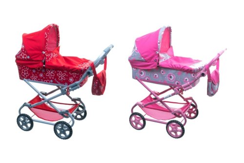 Moderní kočárek pro panenky s hlubokou vaničkou. Lehká kovová konstrukce je doplněna většími koly, které ulehčují jízdu s kočárkem. Hluboká vanička je kryta nánožníkem, rukojeť s možností výškového nastavení. Součástí je také košík a přebalovací taška. Rozměr vaničky 60 x 30 cm výška rukojeti max. 74 cm. Rozměry kočárku: v. 87 x š. 38 x d. 77 cm. Vhodný od 3 let.