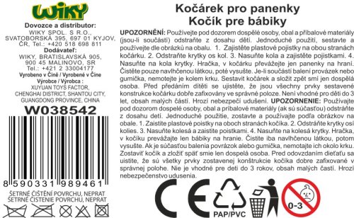 Kočárek hluboký pro panenky. Rozměry 48x30x57 cm.