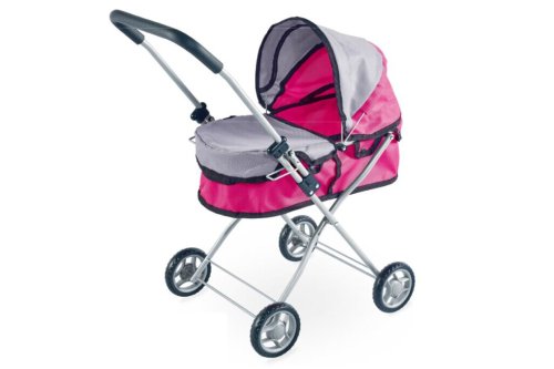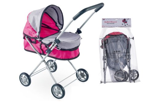 Kočárek pro panenku hluboký skládací. Rozměry 43x34x65 cm. Kovová konstrukce. Obsahuje papírový návod na smontování kočárku i na jeho složení pro převážení. Vhodný pro panenky o velikosti 43 cm.